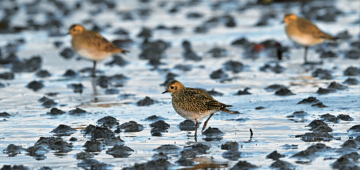 カモ類のエクリプス羽への換羽の特徴は、短期間に換羽を行うため、一時的に飛べなくなる点にあります。エクリプス換羽が行われる時期には、目立たない安全に過ごせる場所に移動し、集団で換羽をするそうです。夏が終わり初秋になると、繁殖羽への換羽が始まり、北から渡来する多くのマガモは、エクリプス換羽がほぼ終了した姿で渡ってきます。そして間もなく、写真のような姿でメスへのアピールを始めるのです。