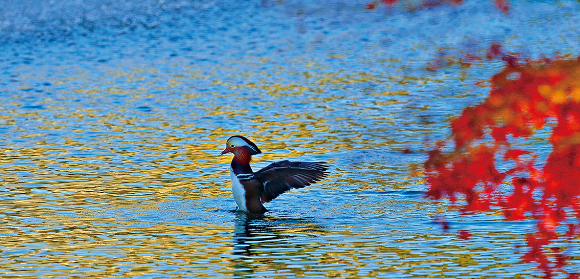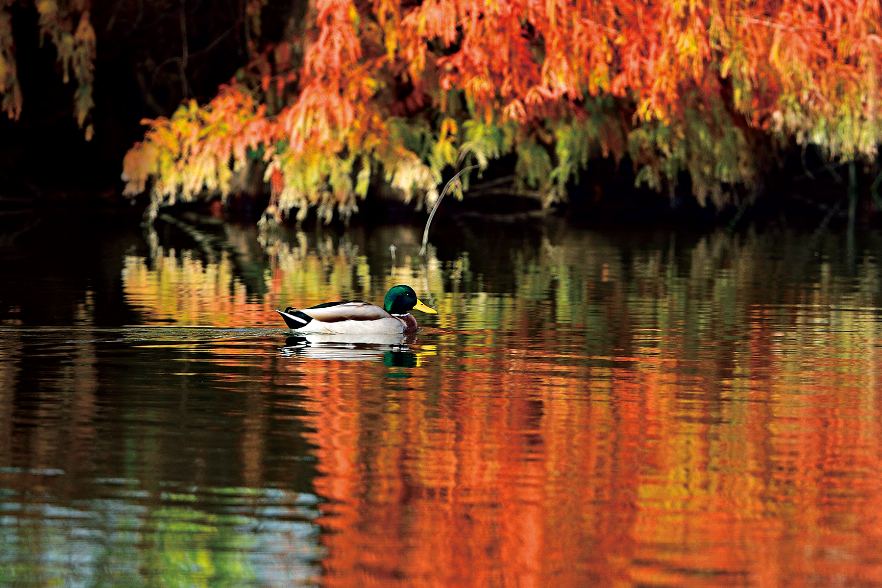 日本の文化や習慣は四季と密接に結びついています。日本人の多くは日常生活の中に季節を取り込み、季節感のある生活を楽しみます。豊かな自然を有する日本に住んでいると、季節の移ろいに敏感になるのは当然なのかもしれません。鳥の撮影においても、できるかぎり季節感のある写真を撮ろうと努力してまいりました。秋が深まるとともに、北から日本列島に多くの種類のカモが訪れ、冬を過ごしますので、今回は水面に映る秋をテーマに、カモの写真をご覧に入れます。