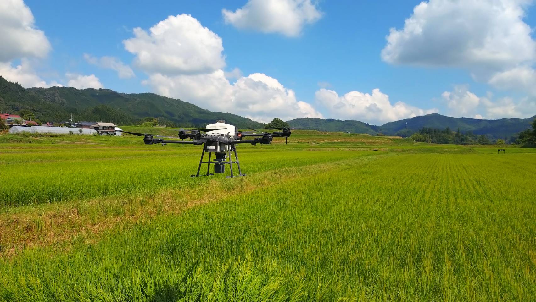 温暖化などの影響により増加しているイネカメムシはドローンを使い対策を行います。