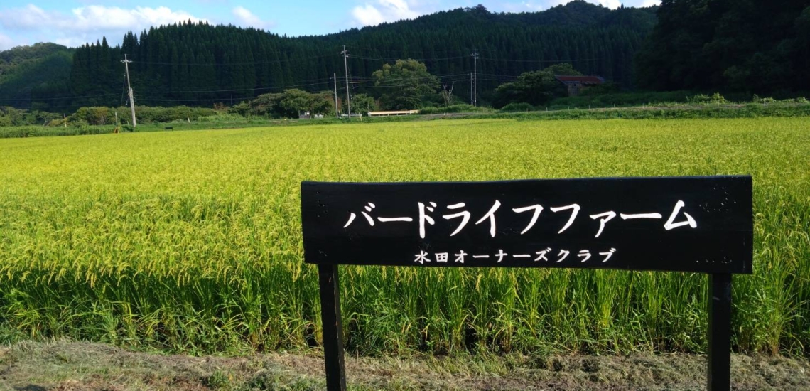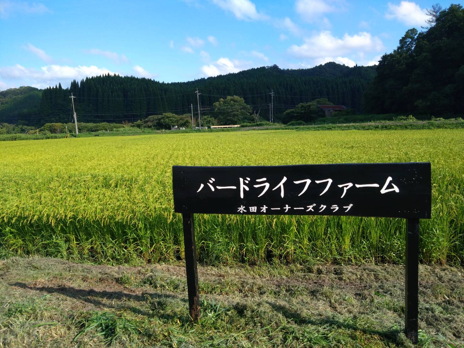 バードライフファームは、株式会社あっぷふぁーむから、2013年よりご寄附いただいている水田(22.5アール)です。バードライフがオーナーとなり、生産者の方々が毎年、環境に配慮したお米作りを行っています。収獲されたお米は、バードライフのチャリティー・ディナーでお土産として使わせていただいており、大変美味しいお米と評判です。